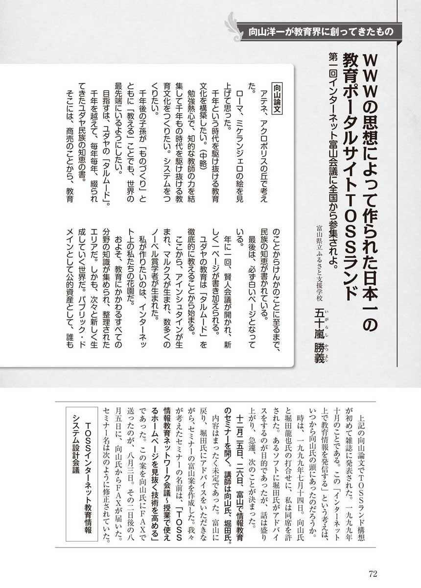 1997ǯ7·î14Æü¤Ë¹Ô¤ï¤ì¤¿¸þ»³Íΰì¤ÈËÙÅÄζÌé»á¤ÎÂǤÁ¹ç¤ï¤»¤ËƱÀʤ·¤¿¤È¤¤¤¦¸Þ½½Íò»á¤Ï¡¢ÉÙ»³¸©¤Ç¡ÖTOSS¥¤¥ó¥¿¡¼¥Í¥Ã¥È¶µ°é¾ðÊó¥·¥¹¥Æ¥àÀ߷ײñµÄ¡×¤ò³«ºÅ¤¹¤ë¤³¤È¤Ë¤Ê¤Ã¤¿¤½¤¦¤Ç¤¹¡£