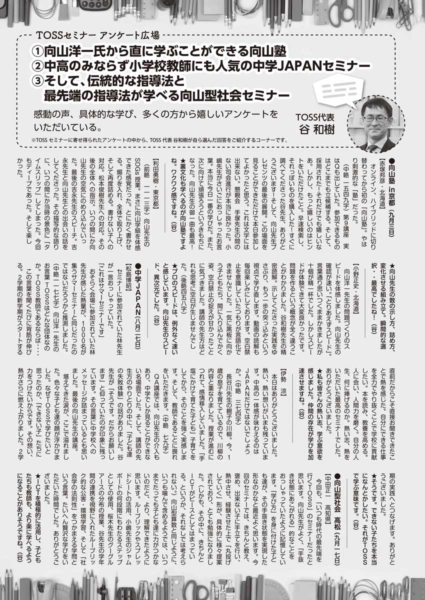 ¤³¤Î¥³¡¼¥Ê¡¼¤ÏTOSS¤Ç¹Ô¤ï¤ì¤¿¼çÍפʥ»¥ß¥Ê¡¼¤Î»²²Ã¼Ô¥¢¥ó¥±¡¼¥È¤«¤é¡¢TOSSÂåɽ¤Ç¤¢¤ê¥È¡¼¥¯¥é¥¤¥óÊÔ½¸Ä¹¤Ç¤â¤¢¤ëëϼù»á¤¬¡¢ÆâÍÆ¤ÎÁÇÀ²¤é¤·¤¤²óÅú¤òÁª¤Ó¡¢¥³¥á¥ó¥È¤òꤍ¤Æ·ÇºÜ¤¹¤ë¤â¤Î¤Ç¤¹¡£