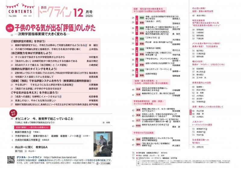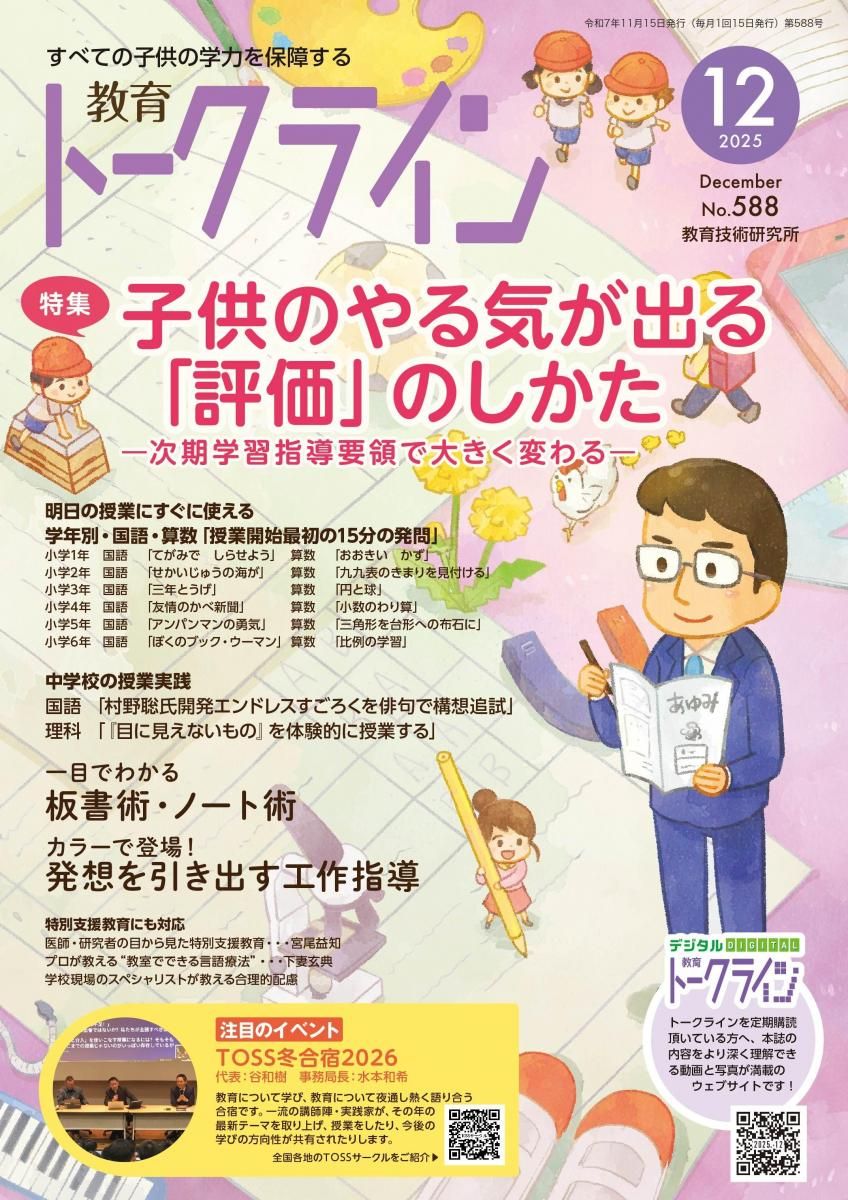 ¡¡2025ǯ12·î¹æ¤ÎÆÃ½¸¤Ï¡¢¡Ö»Ò¶¡¤Î¤ä¤ëµ¤¤¬½Ð¤ë¡Öɾ²Á¡×¤Î¤·¤«¤¿¡¡¨¡¼¡´ü³Ø½¬»ØÆ³Í×ÎΤÇÂ礤¯ÊѤï¤ë¨¡¡×¤Ç¤¹¡£ ¡¡Ê¸²Ê¾Ê¤Î¶µ°é²ÝÄø´ë²èÆÃÊÌÉô²ñ¤¬½Ð¤·¤¿»ñÎÁ¤Ë¤Ä¤¤¤Æ¡¢ÀèÀ¸Êý¤Î´Ö¤ÇÂçÊѤÊÏÃÂê¤Ë¤Ê¤Ã¤Æ¤¤¤Þ¤·¤¿¡£ ¡ÖÏÀÅÀ»ñÎÁ© ˤ«¤Ê³Ø¤Ó¤Ë·Ò¤¬¤ë³Ø½¬É¾²Á¤Îºß¤êÊý¡¡¡Á²áÅÙ¤ÊÉéô¤òÀ¸¤¸¤µ¤»¤Ê¤¤ºß¤êÊý¤È¤ÎξΩ¡Á¡Ê2025.7.4¡Ë¡× ¡¡¤³¤ÎÃæ¤Ç¡¢¼¡¤Î¤è¤¦¤Ê²ÝÂ꤬»ØÅ¦¤µ¤ì¤Æ¤¤¤Þ¤¹¡£ ¡·ÁÀ®ÅªÉ¾²Á¤ÈÁí³çŪɾ²Á¤¬°ÍÁ³¤È¤·¤Æ¶èÊ̤µ¤ì¤Æ¤¤¤Ê¤¤¡£ ¢ÎϤ¬¿¤Ó¤Æ¤¤¤ë¤Î¤Ë¡¢³Ø´ü¤ÎɾÄê¤ò³Ø´üËö¤ËÊѹ¹¤Ç¤¤Æ¤¤¤Ê¤¤¡£ £É¾²ÁºàÎÁ¤ò½¸¤á¤ë¤Î¤ËÄɤï¤ì¤Æ»ØÆ³¤Î²þÁ±¤ËÃíÎϤǤ¤Ê¤¤¡£ ¤É¾²Á¤¹¤ë¤³¤È¤Ç¤«¤¨¤Ã¤Æ³Ø¤Ö°ÕÍߤò²¼¤²¤Æ¤¤¤ë ¡¡¡Ø¶µ°é¥È¡¼¥¯¥é¥¤¥ó¡Ù¤ÎëϼùÊÔ½¸Ä¹¤Ï¸ì¤ê¤Þ¤¹¡£ ¡ÖÏÀÅÀ»ñÎÁ¤Ç¤¹¤«¤é³ÎÄꤷ¤¿¤â¤Î¤Ç¤Ï¤¢¤ê¤Þ¤»¤ó¡£¤·¤«¤·¡¢¤³¤¦¤·¤¿Êý¸þ¤ÇµÄÏÀ¤µ¤ì¤Æ¤¤¤ë¤È¤¤¤¦¤³¤È¤ÏÎɤ¤¤³¤È¤Ç¤¹¡£ ¤¼¤Ò¡¢ÌܤòÄ̤·¤Æ¤ª¤¤¿¤¤»ñÎÁ¤Ç¤¹¡£¡× ¡¡Ã«ÊÔ½¸Ä¹¤Ï¡¢¤³¤Îɾ²Á¤Ë¤Ä¤¤¤Æ¡¢¡Ö¸þ»³Íΰì»á¤¬¿·Â´¤ÎÅö»þ¤«¤éµÄÏÀ¤·¤Æ¤¤¤¿¤â¤Î¡×¤À¤È»ØÅ¦¤·¤Þ¤¹¡£¤½¤·¤Æ¡¢ ¡Ö¤³¤ÎÆÃ½¸¤Ç¤Ï»Ò¶¡¤¿¤Á¤¬¤ä¤ëµ¤Ëþ¡¹¤Ë¤Ê¤ëɾ²Á¡¦É¾Äê¤Î¶ñÂÎŪ¤Ê¹©Éפò¤ª¼¨¤·¤¤¤¿¤À¤¤¿¤¤¤È´ê¤¤¤Þ¤·¤¿¡£¡× ¤È¸ì¤ê¤Þ¤·¤¿¡£ ¡¡ ¡¡»Ò¶¡¤¿¤Á¤¬¤ä¤ëµ¤¤Ë¤Ê¤ëɾ²Á¤Î»ÅÊý¤ò³Ø¤Ó¤¿¤¤ÀèÀ¸¤Ï¡¢¤¼¤Ò¡¢¥È¡¼¥¯¥é¥¤¥ó12·î¹æ¤ò¤ªÆÉ¤ß¤¯¤À¤µ¤¤¡£